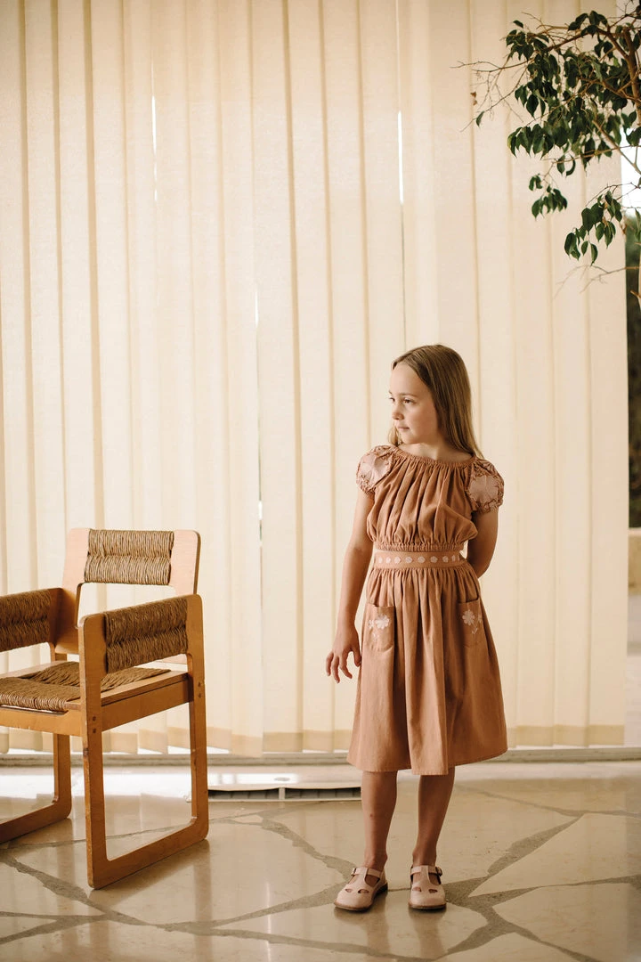 The beautiful Velma set is intended to meet at the middle, giving the impression of a one piece. A truly versatile set, she can also be worn separately – mix and match her with blouses or shorts, or pair with a favourite tee. Features a dramatic embroidered puff sleeve with pretty motif embroideries to the waistband and pockets. Elasticated back waist pull on skirt.