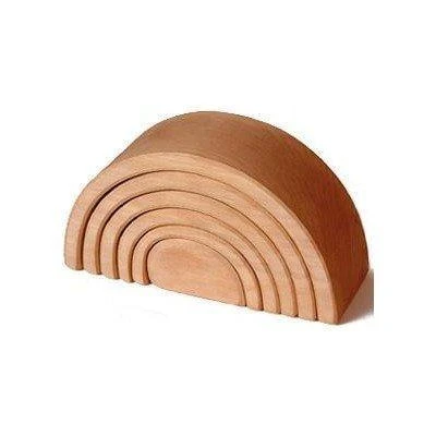 This Rainbow tunnel is really versatile! Children can stack and sort or they will use it as a cradle for dolls, as fence for animals, like a tunnel or bridge for vehicles, as a house for dwarfs and dollhouse dolls and build amazing sculptures… this rainbow will always be integrated in playing with a lot of fantasy.
