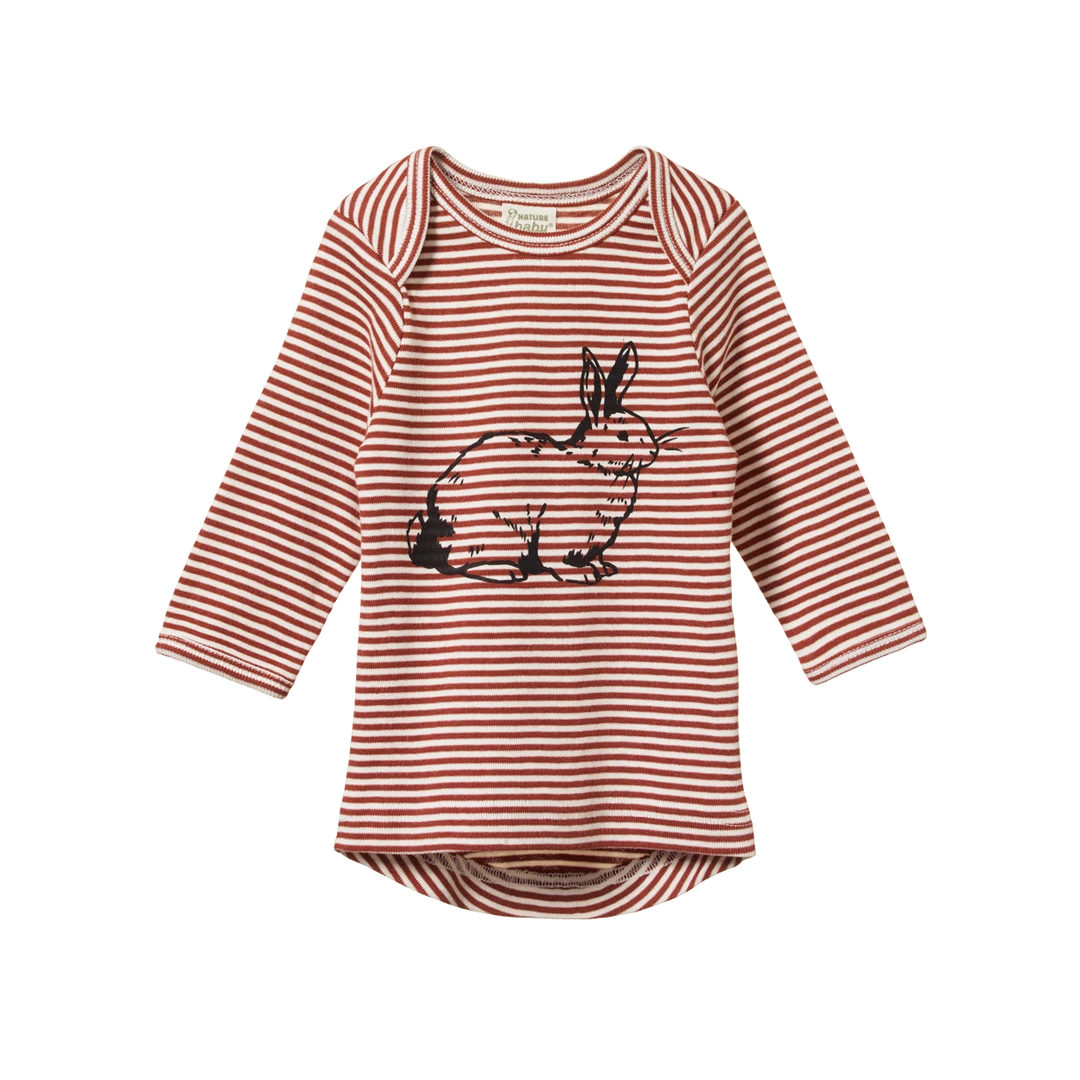 This Simple Tee is a great basic long sleeve printed t-shirt with the same comfy fit as the Nature Baby bodysuits, with an envelope neckline making it easy to pull over baby’s head and a drop hem at the back to keep backs cosy.