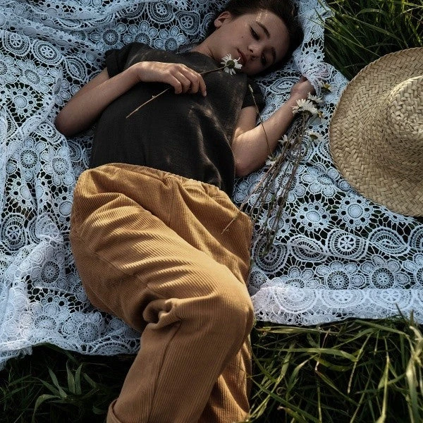 Made from 100% organic cotton corduroy, these unisex pants have a comfortable fitting waist with an inner band that can be tightened to suit different waist sizes.