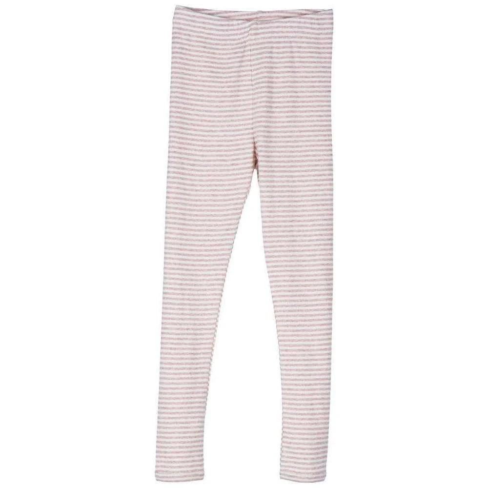 Super soft organic cotton leggings in a lovely powder pink and off white stripe. These leggings are perfect for wearing alone, layering or sleeping in.Â