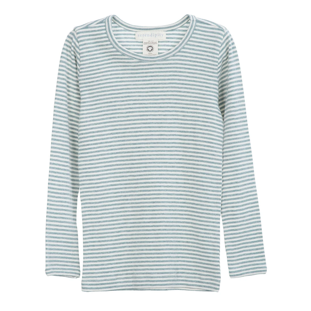 Super soft organic cotton tops in a unisex lake and off white stripe.Â