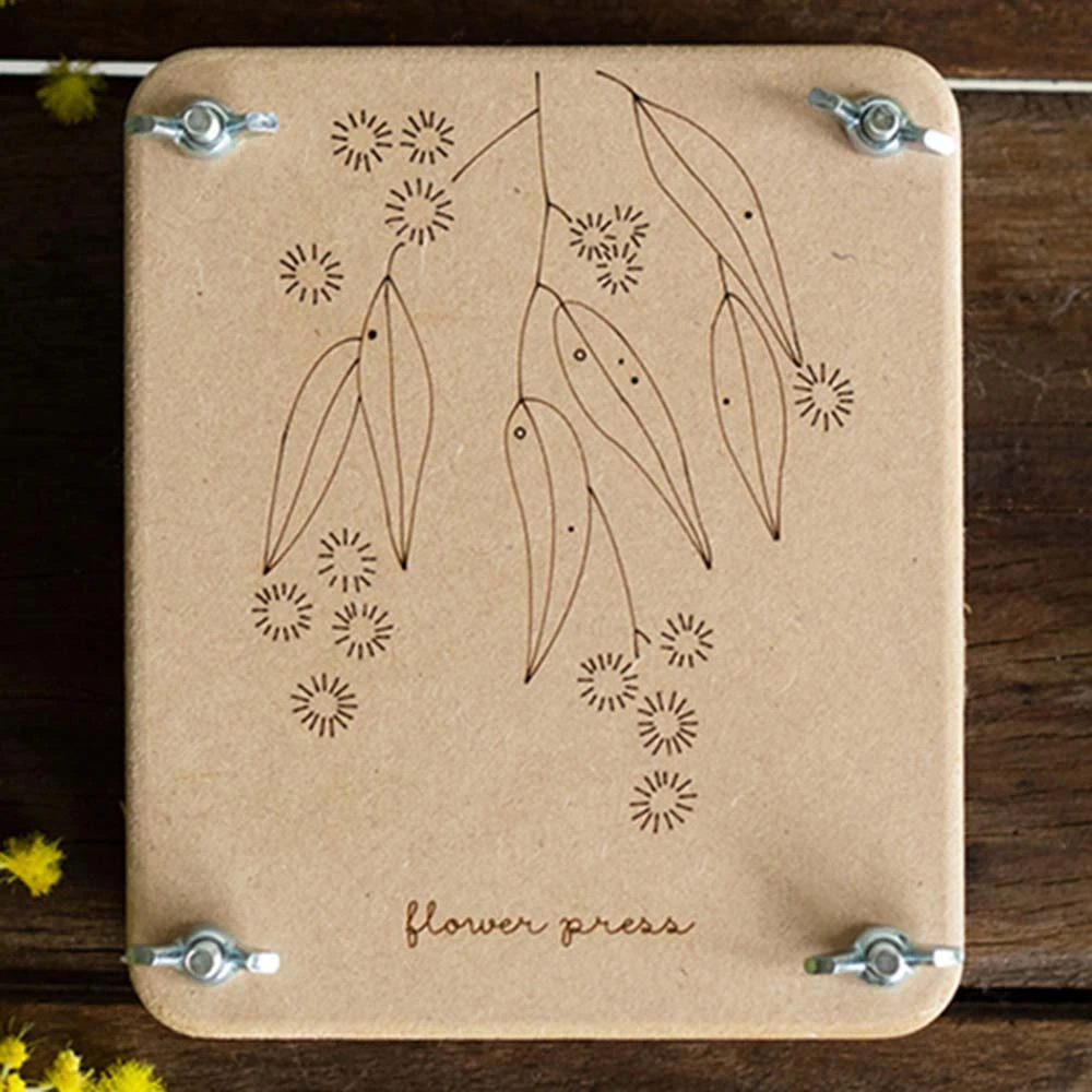 Sow n’ Sow’s hand-crafted mini flower press allows your flowers, blossoms & fauna to be preserved to become works of art. Simply pick your pretty blooms from the garden, arrange them on the sheets of cardboard provided & tighten the nuts. Leave the blooms for 3-4 weeks then use your beautiful dried posies to adorn gift cards, picture frames or whatever your heart desires. Featuring a gorgeous illustration by Daniella Germain, each press is hand crafted in Melbourne out of hard-wearing materials to ensure stable pressure & long-lasting use.